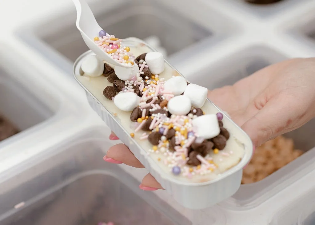 The best part! Select from 9 toppings including chocolate chips, sprinkles, and marshmallows, or premium options like candy bars, nuts or fresh fruit.