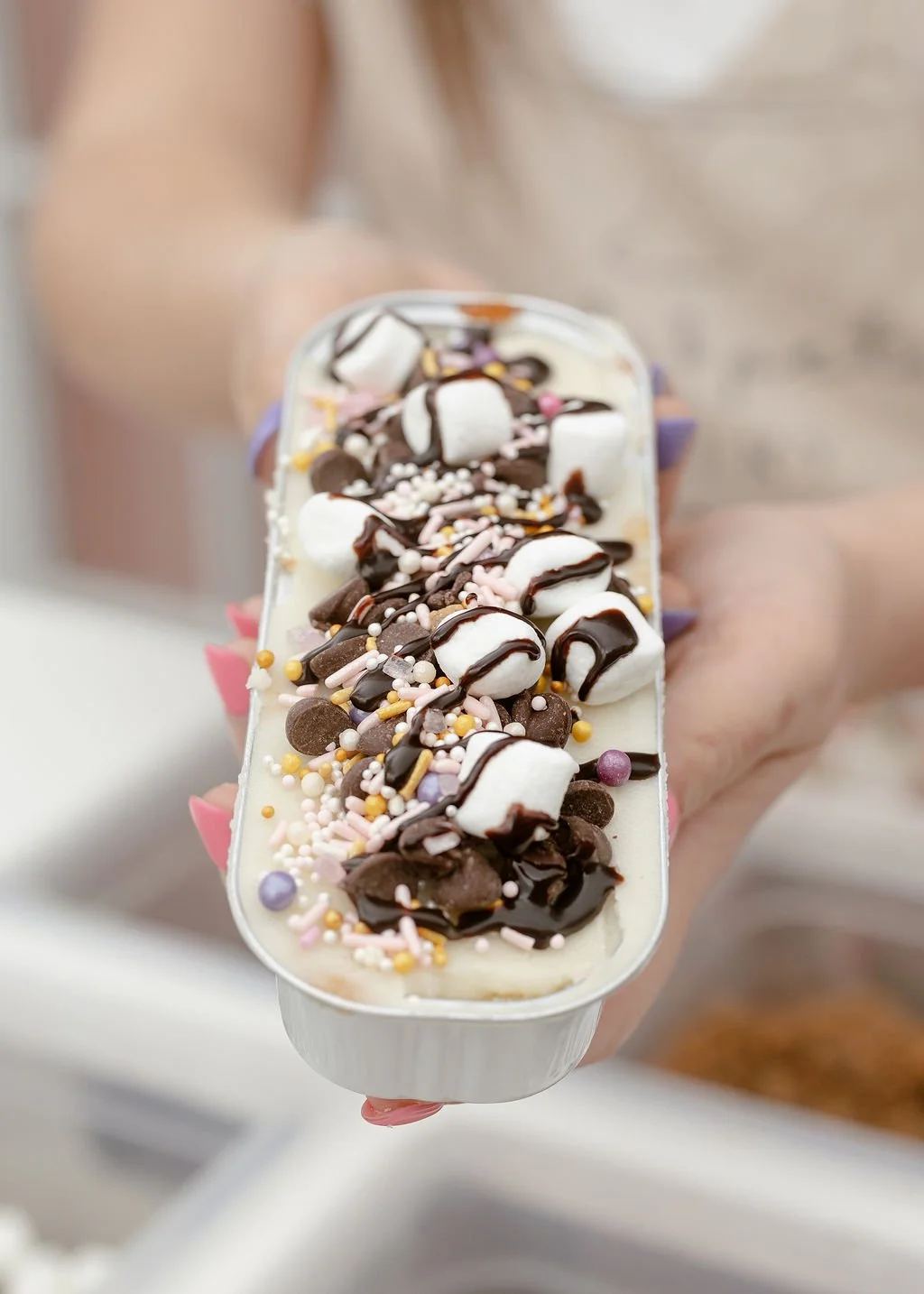 Each packages comes with choice of 2 cake flavors, 2 buttercream flavors, 9 toppings and 3 drizzles. Additional cake and buttercream flavors are available for $0.50 per guest.